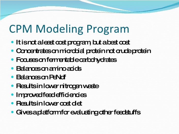 Biomathematics Unit. CPM-Dairy 16 and 32 bit. The NRC protein system was incorporated into the NRC dairy cow model. Ration formulation. The software is developed by RUM&N. The program is built around the latest version of the CNCPS v6.5/v6.55 model, using licensed technology and in collaboration with Cornell University, Department of Animal Science.